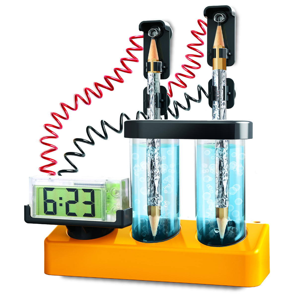 Φτιάξε το δικό σου Επιστημονικό Ρολόι και δες την επιστήμη να ζωντανεύει μπροστά σου! Με απλά υλικά από την κουζίνα – όπως αλατόνερο, αλουμινόχαρτο και μολύβια – θα δημιουργήσεις ηλεκτρική ενέργεια που θα τροφοδοτήσει ένα πραγματικό ψηφιακό ρολόι.