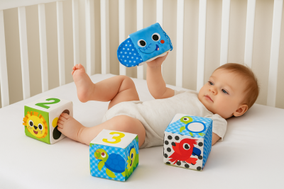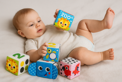 Οι Μαλακοί Κύβοι Ζωολογικός Κήπος θα ενθουσιάσουν όλους τους μικρούς φίλους! Οι κύβοι περιλαμβάνουν ευχάριστες στην αφή λεπτομέρειες, όπως καθρεφτάκι και κορδέλες, οι οποίες προσφέρουν ποικίλα αισθητηριακά ερεθίσματα. Κάθε πλευρά του κύβου περιλαμβάνει και μια διαφορετική πληροφορία. Τα μωρά μπορούν να φτιάξουν παζλ με τους κύβους συνδυάζοντάς τους κατάλληλα, να τους στοιβάξουν, να μάθουν αρίθμηση, χρώματα και σχήματα.