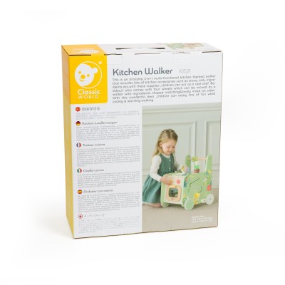 Αυτή η εκπληκτική περπατούρα 2 σε 1 με θέμα την κουζίνα προσφέρει αμέτρητες δυνατότητες παιχνιδιού και μάθησης! Περιλαμβάνει πλούσια αξεσουάρ κουζίνας, όπως κουζινάκι, νεροχύτη, υλικά μαγειρικής και άλλα, ώστε τα παιδιά να «μαγειρέψουν» ένα φανταστικό γεύμα. Παράλληλα, διαθέτει τέσσερις τροχούς για χρήση ως περπατούρα, καθώς και παιχνίδι αντιστοίχισης σχημάτων (με υλικά φαγητού) και έναν χαριτωμένο λαβύρινθο στα πλαϊνά. Ένα υπέροχο παιχνίδι που ενισχύει τη φαντασία, τις κινητικές δεξιότητες και την αγάπη για τη δημιουργική μάθηση – ιδανικό για να συνδυάσει το περπάτημα με τη μαγειρική!