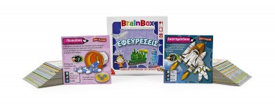 Γνώρισε τις πιο σημαντικές ή και παράξενες εφευρέσεις! Διάλεξε μια κάρτα μέσα από το BrainBox. Αναποδογύρισε την κλεψύδρα και προσπάθησε να μάθεις απ'έξω την κάρτα σε 10 δευτερόλεπτα! Τώρα ρίξε το ζάρι και απάντησε στην αντίστοιχη ερώτηση. Αν απαντήσεις σωστά κρατάς την κάρτα, αν απαντήσεις λάθος βάζεις την κάρτα πάλι μέσα στο BrainBox.