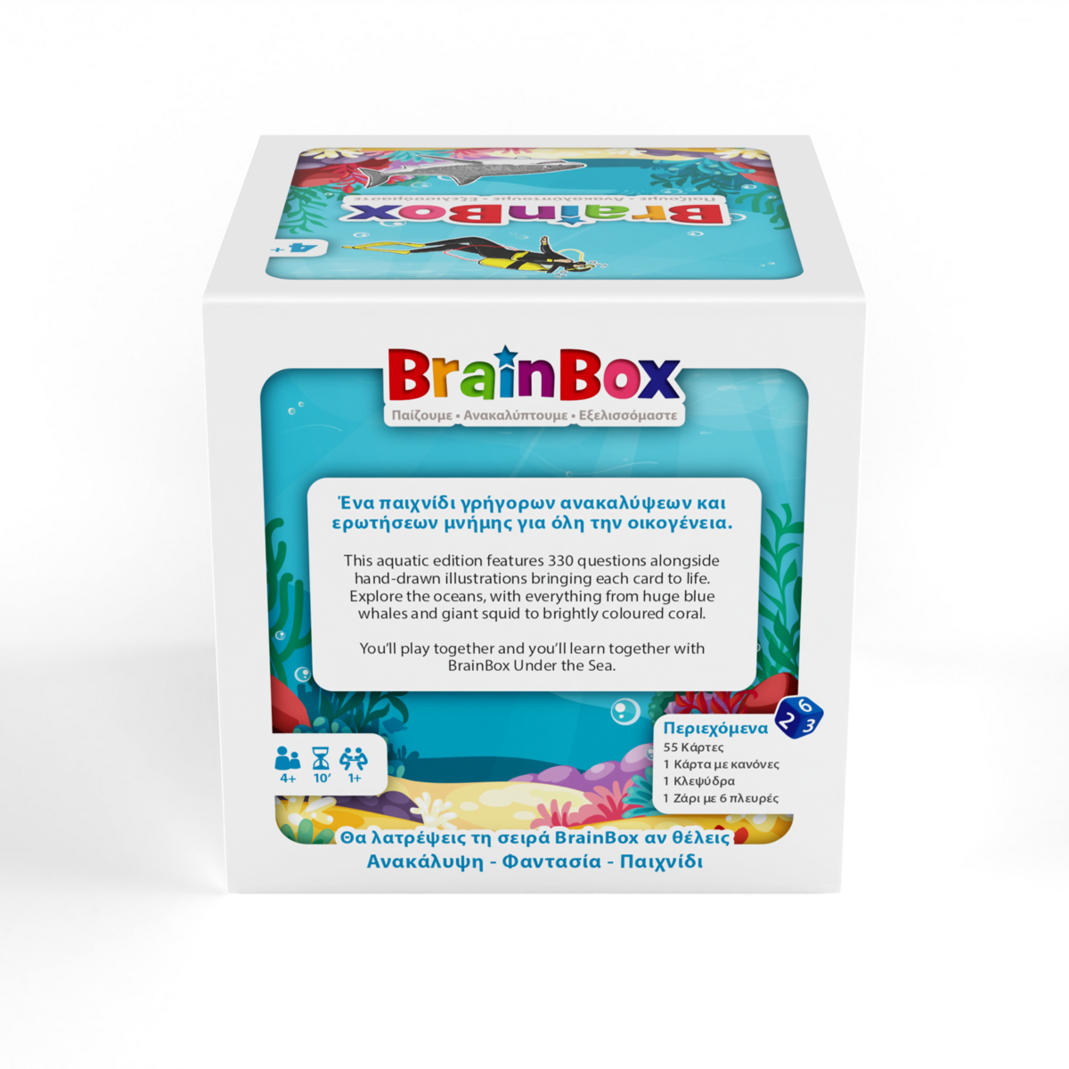 Ανακάλυψε τους ωκεανούς με αυτό το συναρπαστικό BrainBox. Σχεδιασμένο για να παίζουν οι γονείς με τα παιδιά τους, αυτό το υπέροχο παιχνίδι θα βελτιώσει την παρατηρητικότητα και τις μνημονικές ικανότητες. Ο θαλάσσιος κόσμος είναι γεμάτος με φανταστικά πλάσματα.