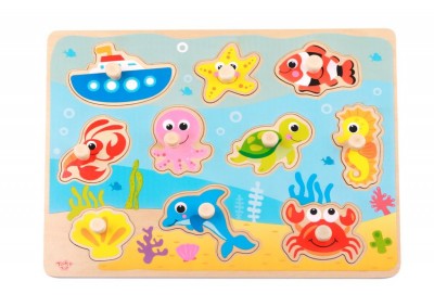 Ένα ξύλινο παζλ με εκπαιδευτικά σφηνώματα εμπνευσμένα από τον κόσμο της θάλασσας, ιδανικό για την ανάπτυξη των κινητικών δεξιοτήτων και τον συγχρονισμό ματιού-χεριού. Κατάλληλο για παιδιά ηλικίας άνω των 18 μηνών.