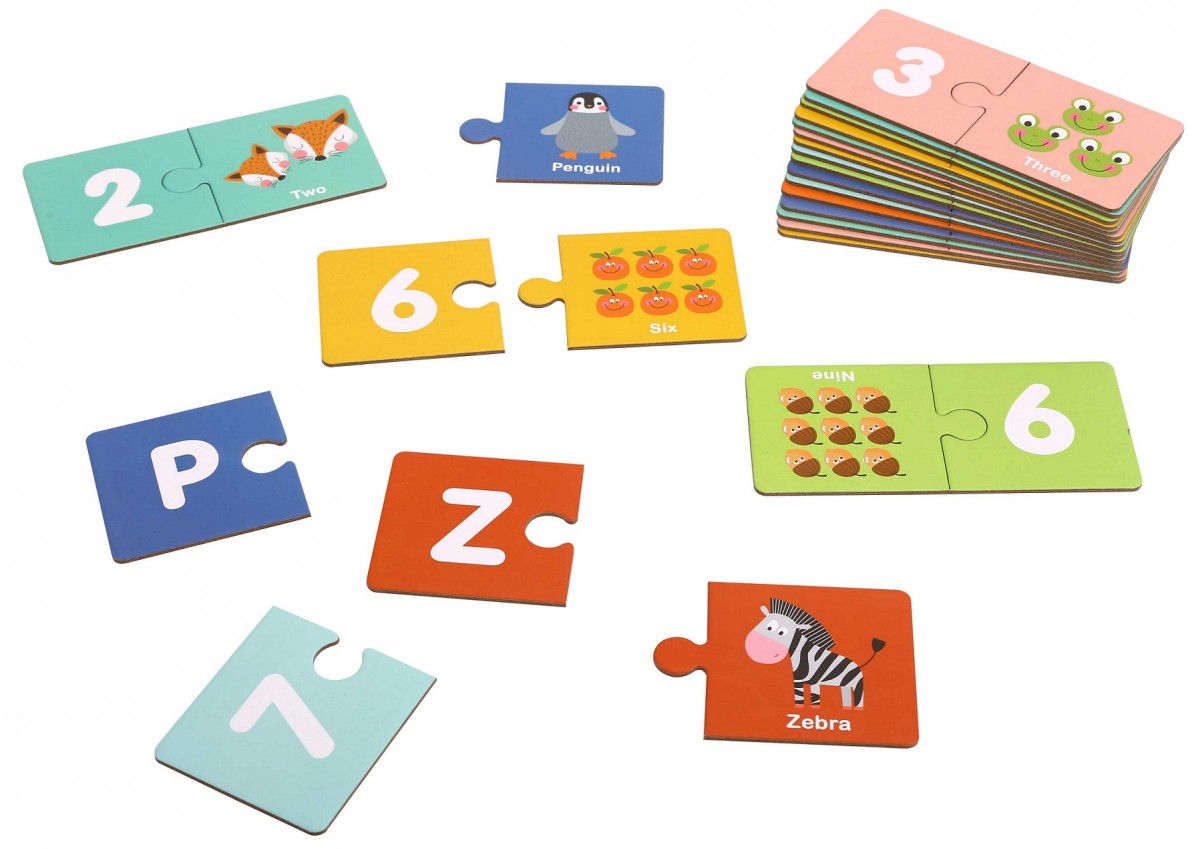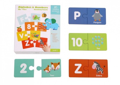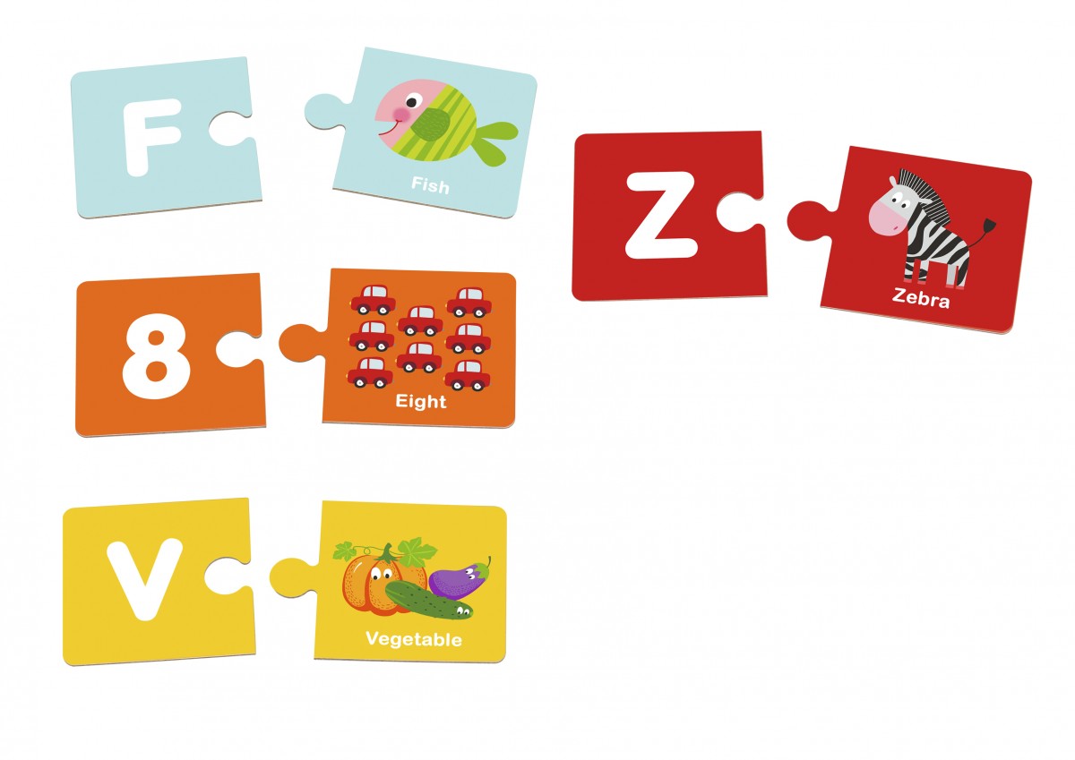 Το παιχνίδι περιέχει εκπαιδευτικές κάρτες παζλ με αγγλικές λεξούλες και εικόνες που τις περιγράφουν και που αντιστοιχούν στα 26 γράμματα της αγγλικής αλφαβήτου και τους αριθμούς από το 1 ως το 10. Οι κάρτες συνδυάζονται ανά δύο. Κάθε κάρτα στην αριστερή πλευρά έχει γράμμα ή αριθμό και στη δεξιά πλευρά έχει την εικόνα και την αντίστοιχη αγγλική λεξούλα. Το παιδί πρέπει να συνδυάσει τη δεξιά πλευρά των καρτών παζλ (εικόνα και λέξη) με την αντίστοιχη σωστή αριστερή πλευρά (γράμμα ή αριθμό).