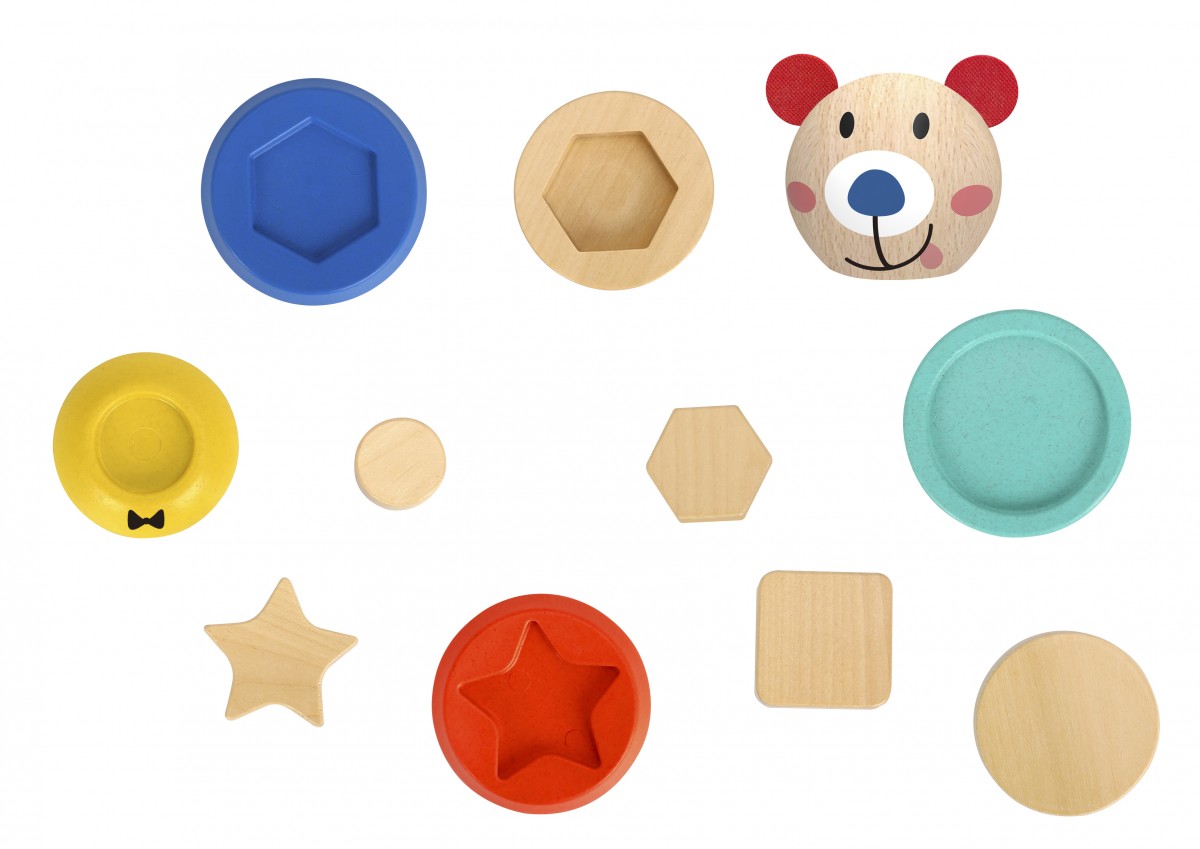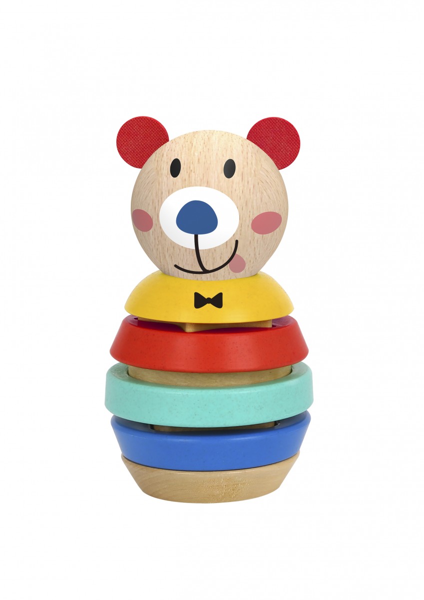 Αποτελείται από 11 διαφορετικά ξύλινα τμήματα που δίνουν τη δυνατότητα στο παιδί να κατασκευάσει το σώμα του αρκουδιού στοιβάζοντας το ένα πάνω στο άλλο καλλιεργώντας έτσι τις κινητικές δεξιότητές του και τον συντονισμό ματιών και χεριού.