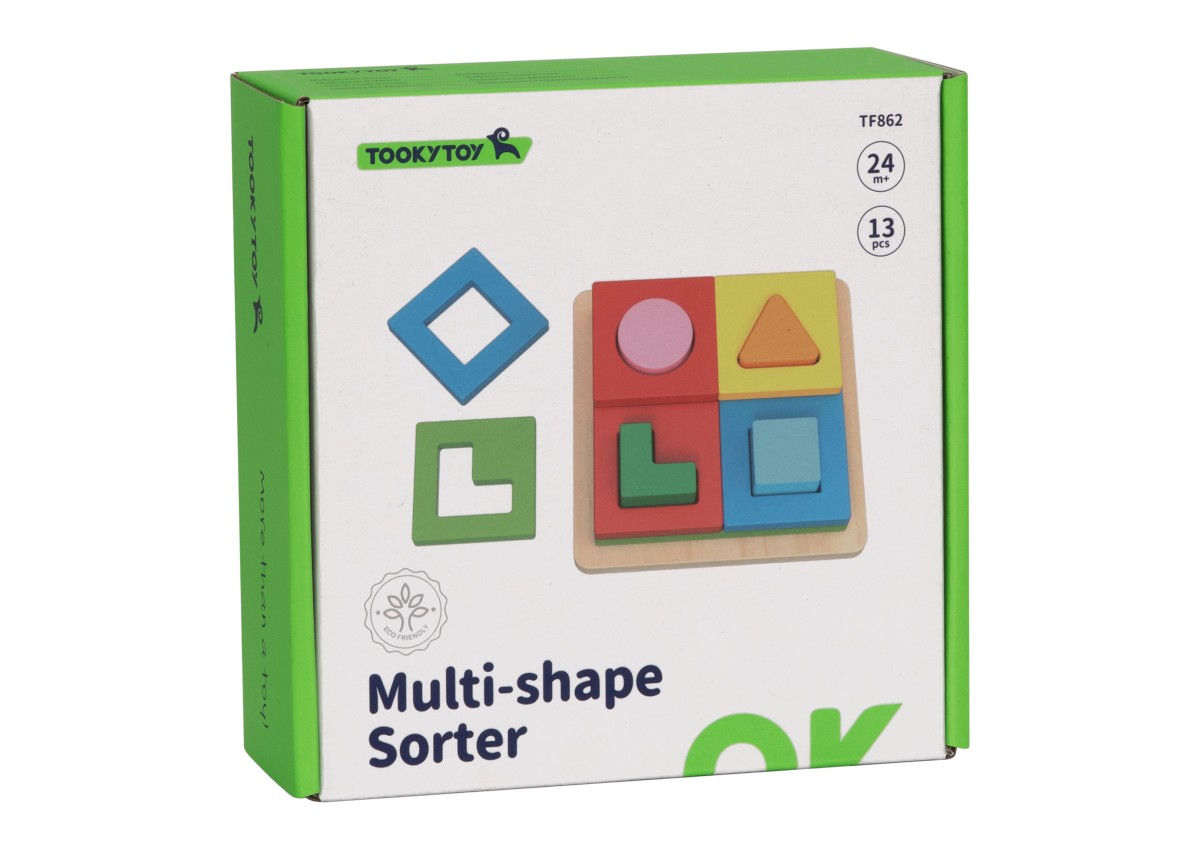 Το παιχνίδι αποτελείται από μια ξύλινη βάση, 4 γεωμετρικά σχήματα σε διαφορετικά χρώματα και 8 διαφορετικές ξύλινες φόρμες - παζλ. Το παιδί τοποθετεί τα σχήματα στην ξύλινη βάση και στη συνέχεια προσπαθεί να ταιριάξει κατάλληλα τις ξύλινες φόρμες με τα σχήματα ακολουθώντας τη λογική συναρμολόγησης ενός παζλ.