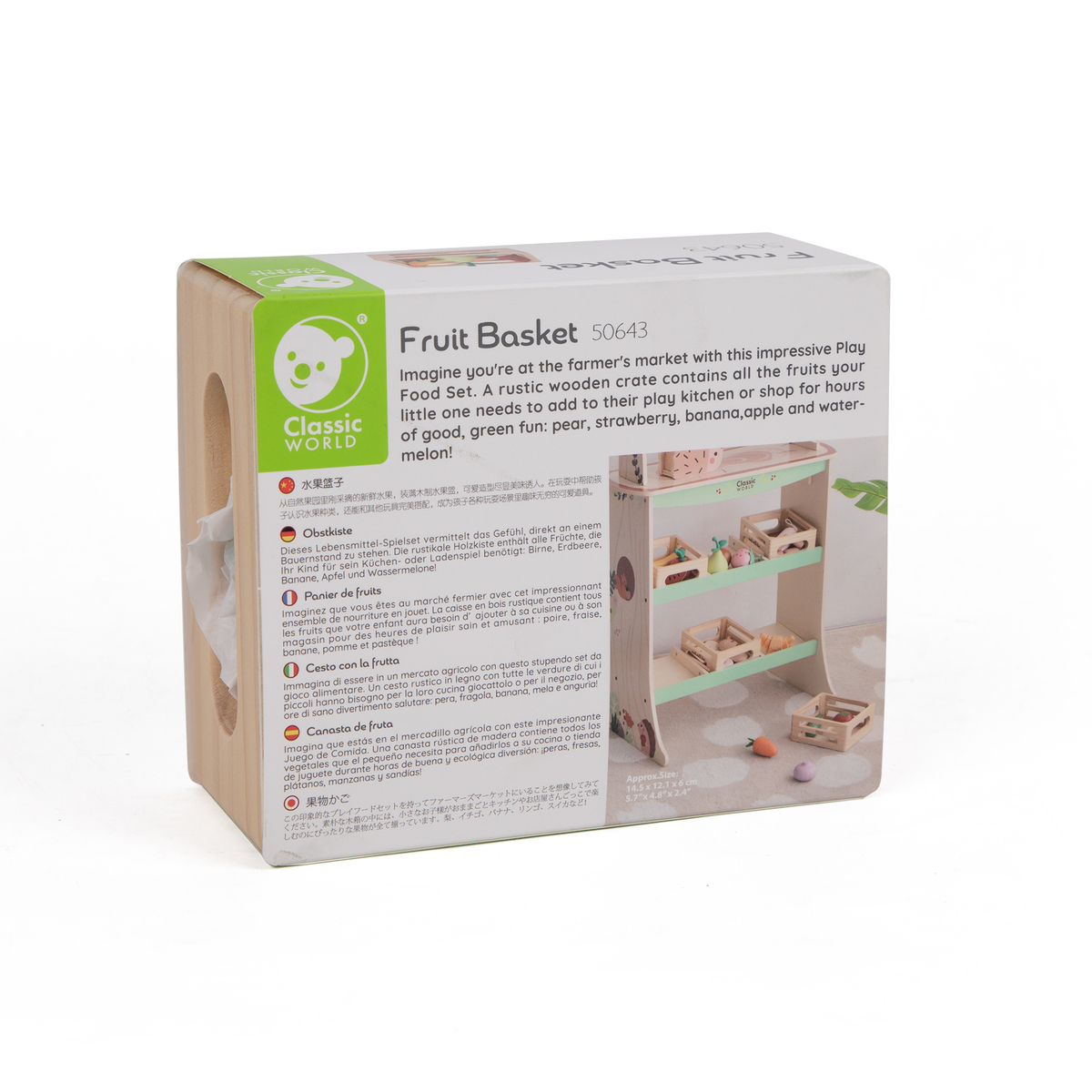 Αυτό το γοητευτικό ξύλινο παιχνίδι περιλαμβάνει ένα καλάθι με πολύχρωμα φρούτα, όπως αχλάδι, φέτα καρπουζιού, μπανάνα και φράουλα. Σχεδιασμένο με αγάπη, είναι τέλειο για τους μικρούς μας φίλους που θέλουν να εξερευνήσουν τη σωστή διατροφή με διασκεδαστικό τρόπο.