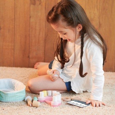 Ας γίνουμε οδοντίατροι και ας διασκεδάσουμε χάρη σε αυτό το ξύλινο σετ βαλιτσάκι οδοντιάτρου! Το σετ περιλαμβάνει 4 οδοντιατρικά εργαλεία, 2 κάρτες ακτινογραφίας, 8 δόντια σε θήκη, 2 επιπλέον δόντια και μια τσάντα για να αποθηκεύετε όλα τα αξεσουάρ. Παίζοντας, τα παιδιά βελτιώνουν τη φαντασία τους και την ικανότητα επίλυσης προβλημάτων, ενώ εξοικειώνονται και με τις επισκέψεις στον οδοντίατρο.
