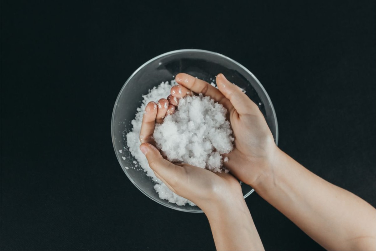 Στο σετ μας θα βρείτε μια λευκή σκόνη, την οποία ρίχνετε στο νερό για να ενεργοποιήσει τις εκπληκτικές της ιδιότητες. Μέσα στο νερό, η σκόνη μετατρέπεται σε χιόνι.